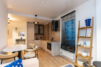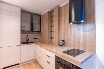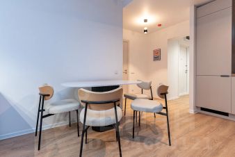 Квартира меблирована качественной и дорогой мебелью, включая мебель из Франции и аксессуары из Англии, оснащена кухней на заказ со встроенным холодильником, духовым шкафом с СВЧ и вытяжкой каминного типа.