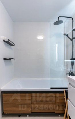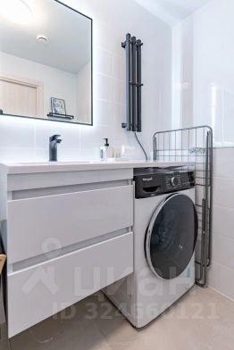 В ванной комнате установлена импортная сантехника AM PM и раковина из акрила с широкой столешницей.