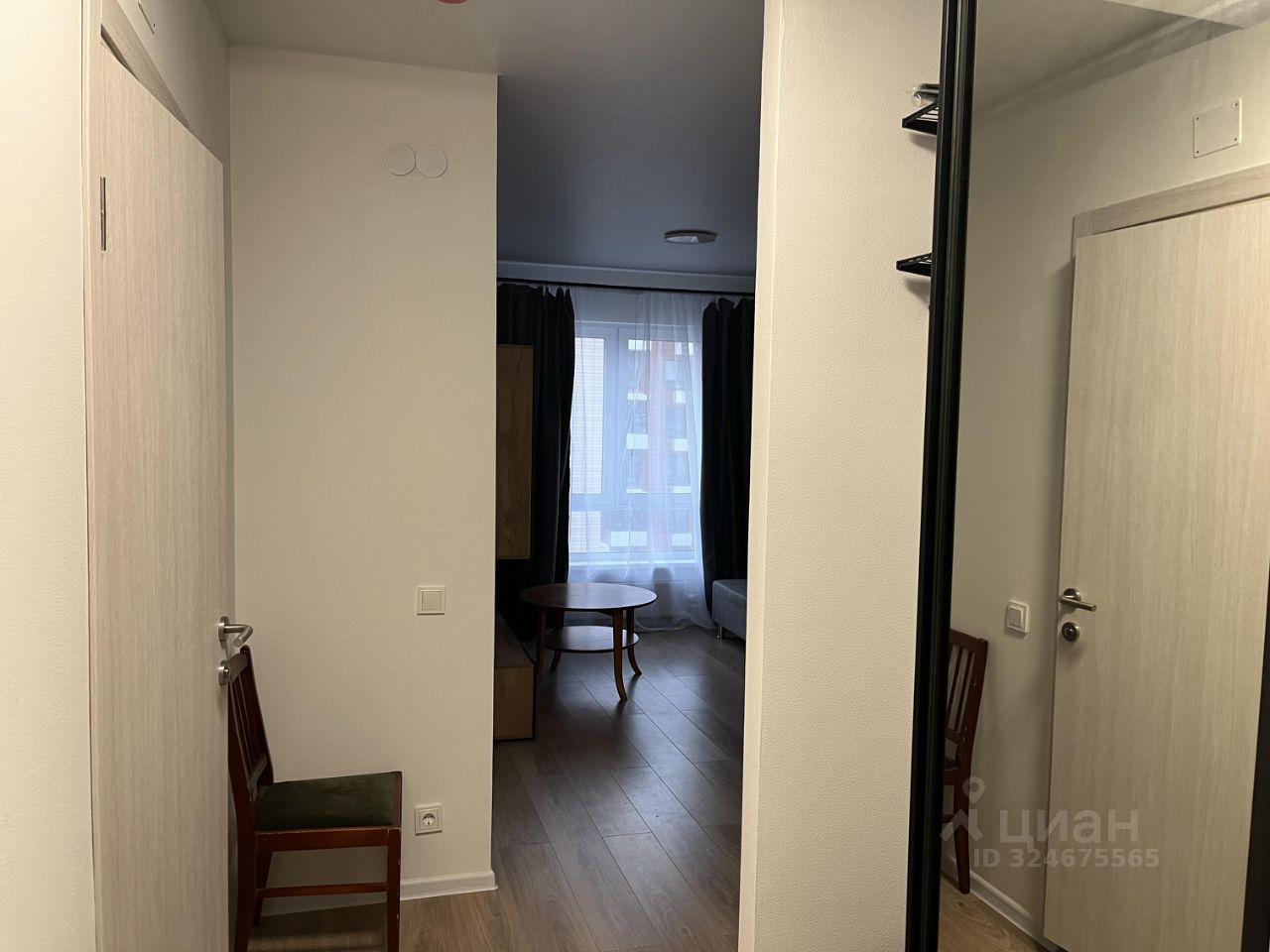 Сдается уютная однокомнатная квартира площадью 32.1 кв. м на 8 этаже 12-этажного дома. Дом новый, построен в 2024 году, расположен в районе метро "Проспект Ветеранов", до которого 25 минут на машине. Окна квартиры выходят во двор, поэтому в ней тихо и спокойно.