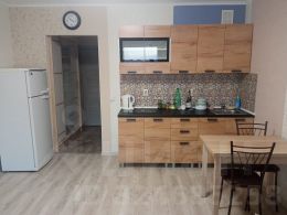 В квартире сделан качественный ремонт, поэтому можно сразу заехать и жить. Для вашего удобства в студии есть вся необходимая мебель: комфортная зона для отдыха и кухонная мебель. На кухне также имеются холодильник и стиральная машина. Санузел совмещённый, оборудован современной душевой кабиной. Из квартиры открывается вид на окрестности, поэтому вы сможете наслаждаться красивыми пейзажами прямо из дома.