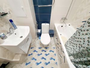 Отличное состояние. Есть вся необходимая Мебель и Техника для комфортного проживания. Есть теплый пол. Большая застекленная лоджия.