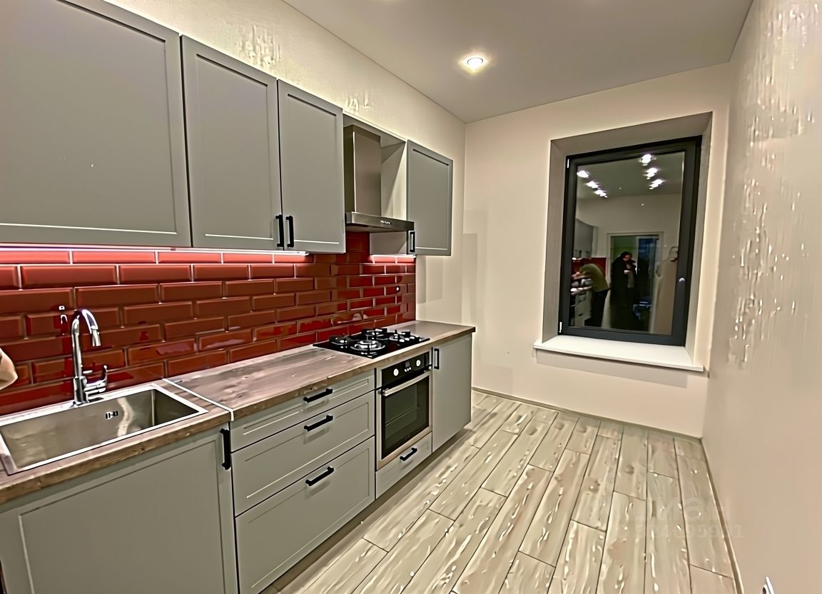 Современная оборудованная кухня оснащена всем необходимым: холодильником, посудомоечной машиной, духовым шкафом и стиральной машинкой;