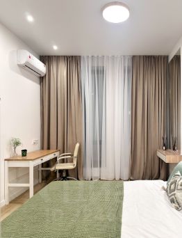 Новая современная мебель, вместительные шкафы, удобная кровать с ортопедическим матрасом, отдельное рабочее место;
