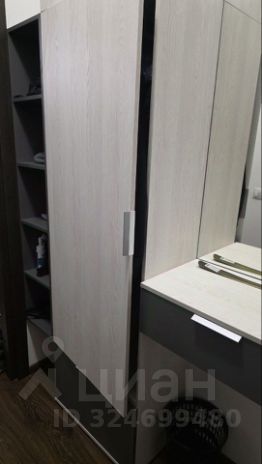 Вместительный раскладной диван, интреьерные полки, большой стол и стулья. Широкий большой шкаф для одежды. Функциональный шкаф с зеркалом и дополнительными полочками на входе.