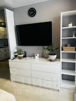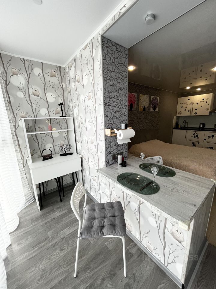 В квартире сделан качественный евроремонт, что создаёт атмосферу комфорта и уюта. Пространство студии грамотно организовано, а современная мебель в комнате делает проживание ещё более удобным. Совмещённый санузел оборудован ванной. На кухне установлена необходимая техника, включая холодильник и стиральную машину, а в жилой зоне есть телевизор. Подключён интернет, что позволяет без проблем работать или развлекаться.