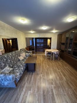 3 комнаты . 2 изолированные спальни 16 м2 и 10м2 . Гостиная 22м2. Из спальных мест: в одной комнате 2х спальная кровать с ортопедическим матрасом. -во второй 2х ярусная кровать. -в гостиной раскладывающийся диван.