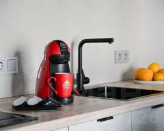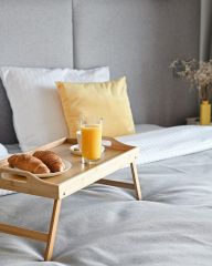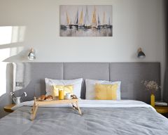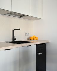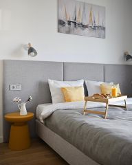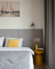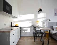 Оснащение апартаментов: кондиционер, теплый пол, wi-fi, smart телевизор, микроволновая печь, индукционная плита, стиральная и посудомоечная машины, холодильник с морозильным отделением, чайник, капсульная кофеварка, фен, пылесос, утюг, гладильная доска, электрический полотенцесушитель, всё для уборки, посуда, постельное бельё, полотенца, расходные материалы на первое время, кровать 180х200. При необходимости можно установить раздельные кровати.