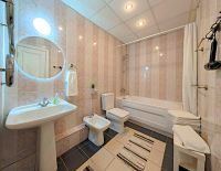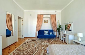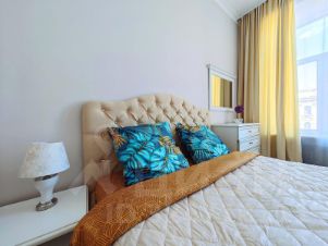 Общая площадь 120 кв.м. Комнаты 36+15+28, кухня 4 кв.м. Просторная благоустроенная квартира с новым современным ремонтом и полным оснащением для Вашего комфорта. В Вашем распоряжении - две полноценные спальни и просторная гостиная, совмещенная с кухонной зоной. Кухня полностью оборудована - есть вся необходимая бытовая техника, в том числе мелкая - холодильник, микроволновая печь, посудомоечная машина, кофеварка, электрочайник, тостер. В наличии - ЖК-телевизор, стиральная машина, фильтр для воды, электрообогреватель, фен, утюг, гладильная доска и прочие предметы обихода.