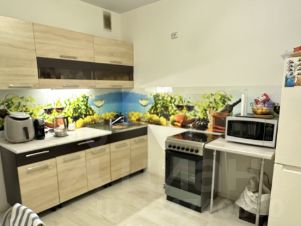 Квартира полностью меблирована и готова к проживанию. В комнате и на кухне есть вся необходимая мебель. Установлена бытовая техника: холодильник, телевизор и стиральная машина. Планировка предусматривает наличие отдельной ванной комнаты с ванной. В квартире подключён интернет, поэтому можно сразу работать или учиться дистанционно.