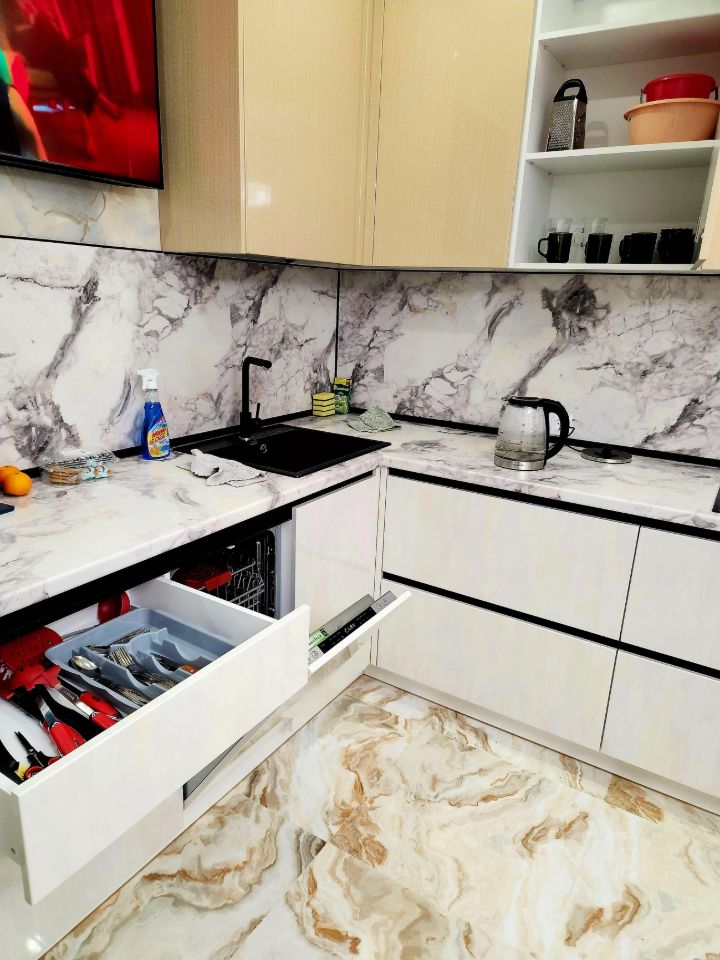 В квартире есть всё необходимое для комфортного проживания: встроенный холодильник, встроенная посудомоечная и стиральная машины, телевизор, интернет. Из окон открывается вид как на улицу, так и во двор, а в вашем распоряжении будут лоджия и балкон.