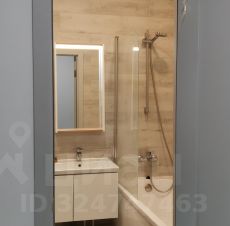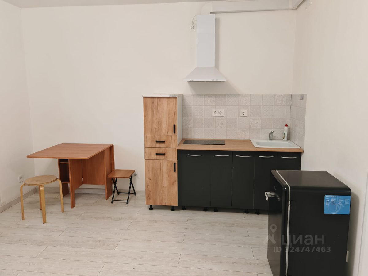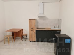 Просторная студия с удобной планировкой и окнами, выходящими на улицу. В наличии мебель на кухне, холодильник и стиральная машина. Санузел совмещённый, с ванной.