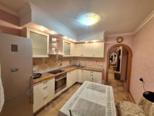 Кухонный гарнитур имеет множество мест для хранения, укомплектован электрической варочной панелью и духовым шкафом, имеется вытяжка и посудомоечная машина. Электрический пол на кухне и ванной комнате.