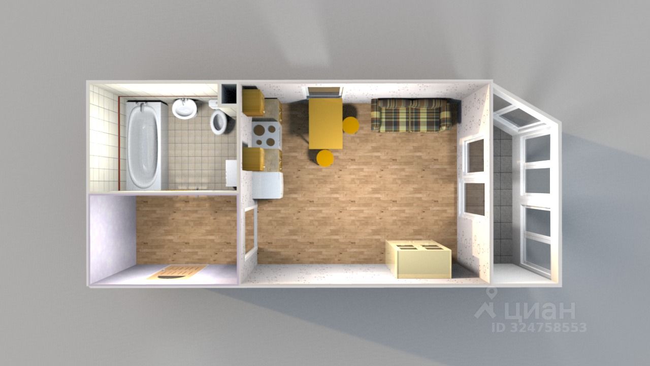 *Студия 26.5кв.м, что больше стандартных, да к тому же с большой застекленной лоджией.