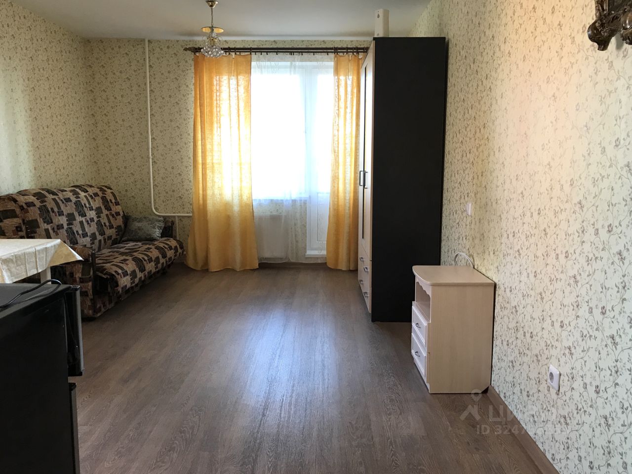 *Добротная мебель: шкаф, комод, диван-кровать, удобная кухонная зона.