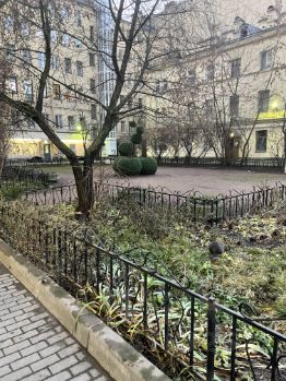Во дворе есть парковка и детская площадка с качелями , в доме есть лифт . Выходя из двора попадаете сразу в центр Петербурга