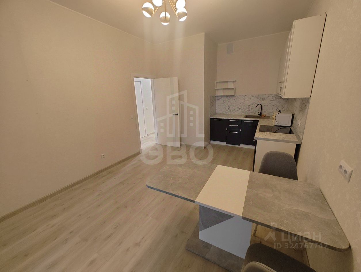 В квартире сейчас кухня с варочной панелью, духовым шкафом, микроволновой печью и обеденный стол со стульями. Остальную мебель и технику возможно привезти свою, либо выбрать вместе с собственником.