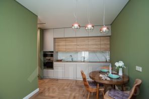 В квартире выполнен качественный дизайнерский ремонт - на полу бельгийский ламинат ёлочка, обои премиум фирмы Миласса, немецкая сантехника Grohe, в санузле керамогранит. Во всех комнатах установлены кондиционеры Futjitsu.