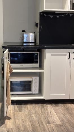 Квартира полностью меблирована: на кухне есть всё необходимое для комфортного приготовления пищи, а в комнате — удобное место для отдыха и сна. В студии установлена вся необходимая техника: холодильник и стиральная машина. Ванная комната оборудована ванной. Совмещённый санузел выполнен в современном стиле, что обеспечивает комфортное проживание.