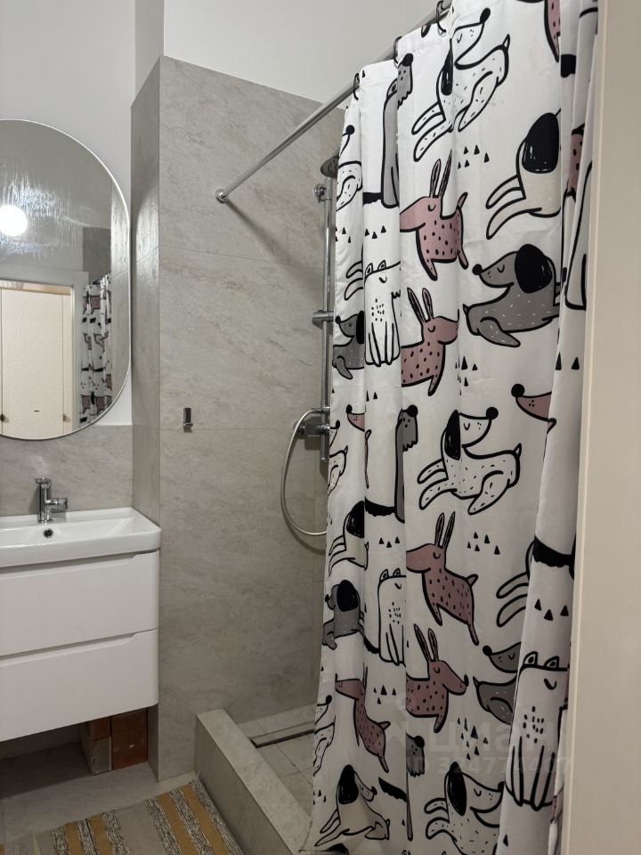 Квартира полностью меблирована: на кухне и в комнате есть вся необходимая мебель. Из техники — холодильник, телевизор и стиральная машина. В ванной комнате установлена современная душевая кабина. Окна выходят на улицу, что позволяет наслаждаться естественным освещением.
