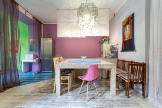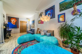 Хозяйка — дизайнер, поэтому почти всё в квартире создано её руками. Продуманные детали, авторские элементы и тёплая атмосфера делают это пространство по-настоящему особенным. Здесь будет уютно творческим, жизнерадостным людям — и особенно понравится детям!