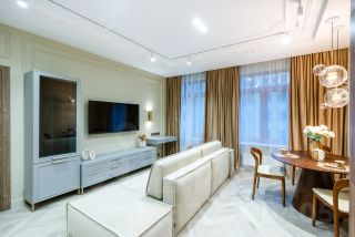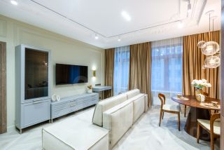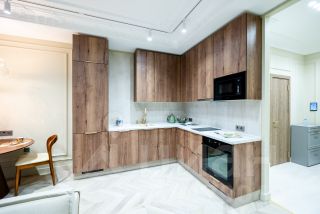 - комплект бытовой техники - встроенный холодильник, духовка, посудомойка, микроволновка, варочная поверхность, стиральная и сушильная машины, смарт телевизор (55 диагональ), кондиционер, интернет 500 мб/сек.