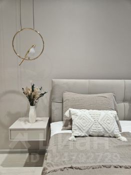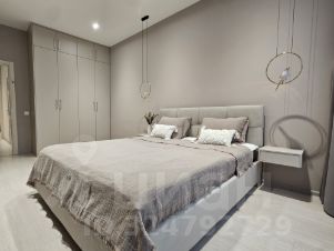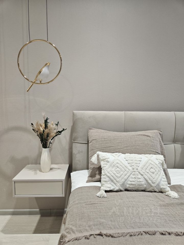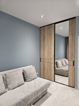Спальня с удобной кроватью шириной 180 см и ортопедическим матрасом Askona, панорамные окна, огромный шкаф и комод.