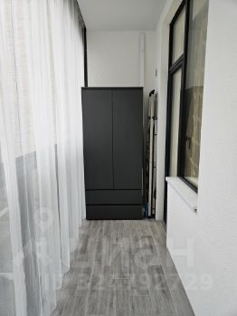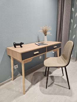 Во второй комнате письменный стол, раскладной диван и вместительный шкаф в нише. Выход на большой балкон с панорамным остеклением из комнаты и кухни.