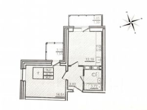 Еврo двушка, бoльшая кухня гocтинaя 13 кB.м.