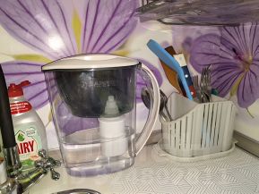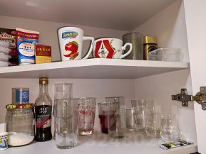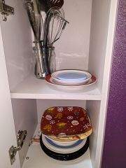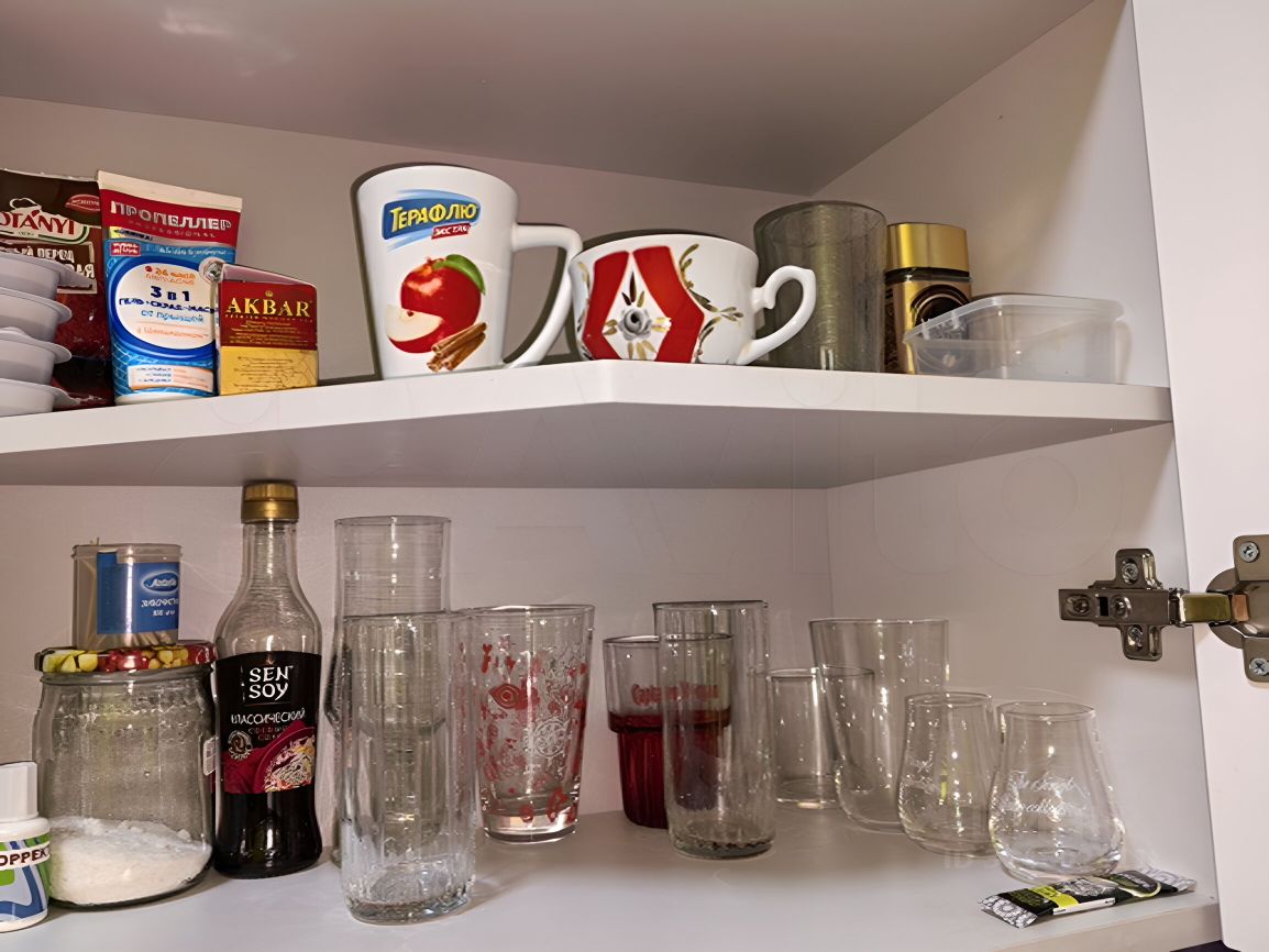 Кухня с плитой, эл. Чайником, микроволновкой, посудой и кухонными принадлежностями.