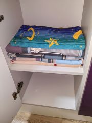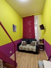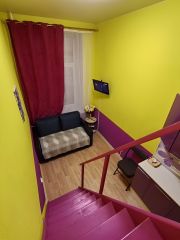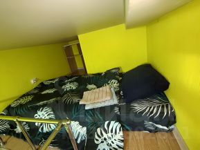 В студии двухспальный диван и матрас на втором уровне с чистым и свежим постельным бельём, и банными полотенцами.