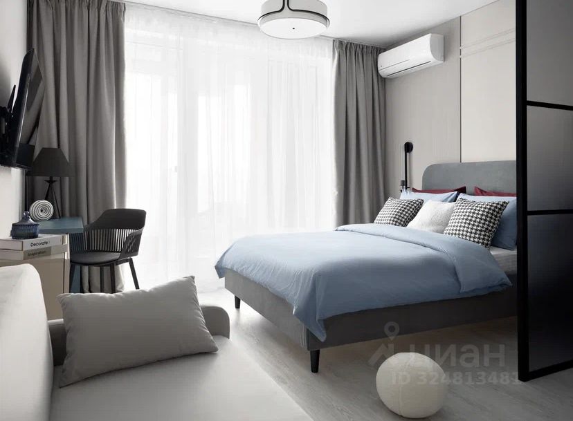 встроенным холодильником,вытяжкой и варочный индукционной панелью. Есть кондиционер,Смарт ТВ и стиральная машина.Кровать на 160 + ортопедический матрас .В ванной комнате установлена душевая кабина, что добавляет комфорта в повседневную жизнь.
