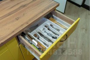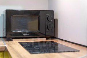 — Оборудованная кухня с посудой, столовыми приборами и встроенной техникой (микроволновая печь, чайник, холодильник, электрическая варочная панель)