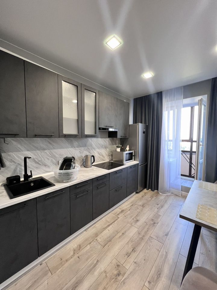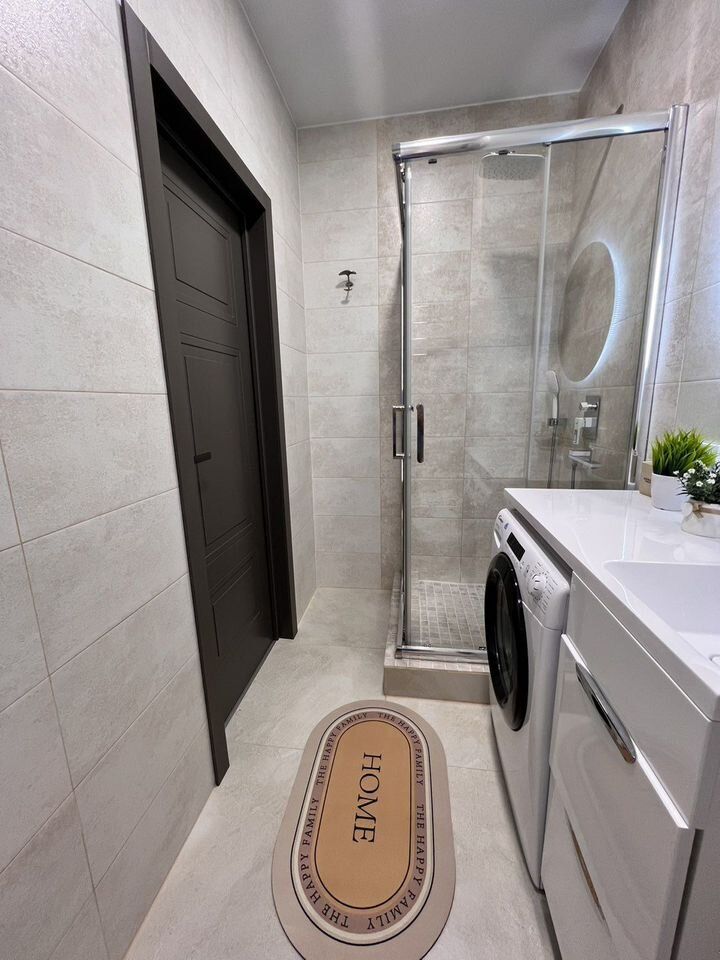 Современная квартира с дизайнерским ремонтом, полностью укомплектована мебелью и бытовой техникой, оборудована всем необходимым для комфортного отдыха и проживания в ней: Комфортная двуспальная кровать 160х200 см с ортопедическим матрасом, Гардеробная при входе с большим зеркалом, бытовая техника.Душевая кабина с тропическим душем .Стиральная машина, фен, утюг, гладильная доска, телевизор и Wi-Fi.