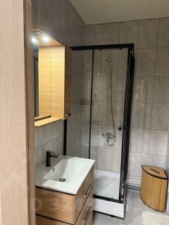 В квартире хороший дорогой ремонт, сделана перегородка спальной зоны, барная стойка и рабочий стол. Кухня с подсветкой, вытяжкой, духовкой, индукционной плитой и микроволновкой. Так же имеется различная посуда, от чашек до форм запекания. Стоит большая трехспальная кровать из натурального дерева, 210 на 180см. Очень комфортный матрас аскона. Имеется стиральная машинка.