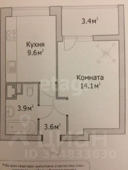 • Общая площадь: 31.5 кв.м, комната: 14.1 кв.м.