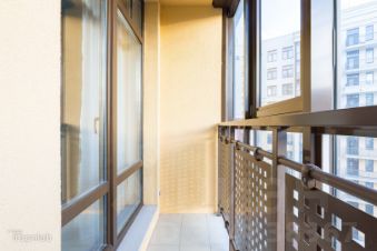 Много места для хранения: отдельная гардеробная комната и большой шкаф с наполнением. Совмещенный санузел в кафеле. Просторная застекленная лоджия, окна выходят в тихий закрытый двор.