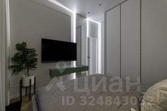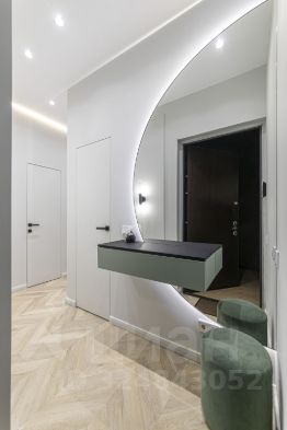 В квартире установлены кондиционеры в каждом помещении, теплые полы, конвекторы в полу, видеодомофон, также предусмотрено множество сценариев освещения для любого настроения и случая, много мест хранения.