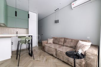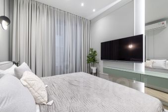 В квартире общей площадью 40 метров выполнен дорогостоящий дезайнерский ремонт. Продуманная планировка квартиры с отдельной оборудованной гардеробной, уютной спальней и функциональной кухней с выходом на лоджию-кабинет.