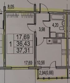 Площадь: 37 кв.м, большая светлая комната — 18 кв.м, просторная кухня — 11 кв.м.