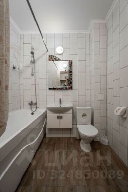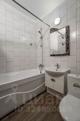В ванной комнате — полноценная ванна, умывальник с тумбой и стиральная машинка - автомат.