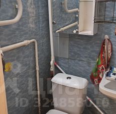 Внутри есть необходимая бытовая техника: холодильник, плита и стиральная машина. Санузел совмещённый, выполнен в светлых тонах. Из мебели — диван и стол, а также шкаф для хранения вещей.