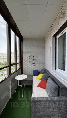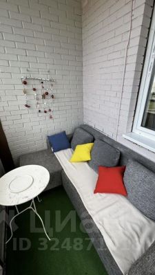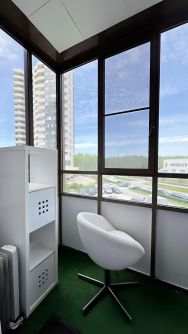 На просторном балконе стоит уютный диван, который тоже можно использовать как спальное место в теплое время года:)