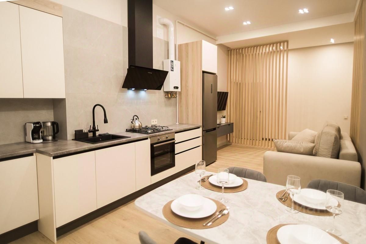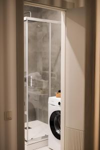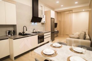 • Полностью укомплектованная кухня (от стиральной и посудомоечной машин до кофемашины и мелких бытовых приборов). Посуда, столовые приборы и необходимая бытовая химия предоставляются.