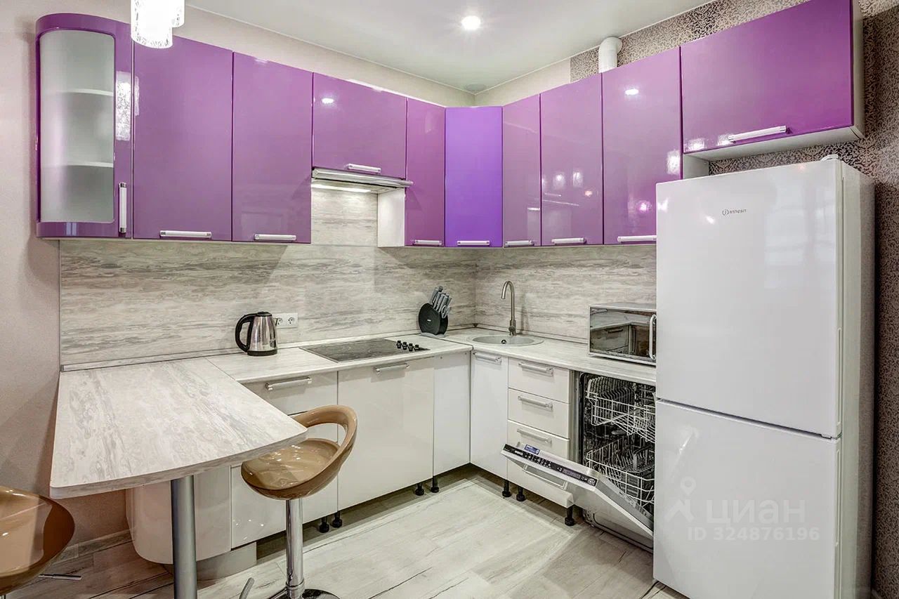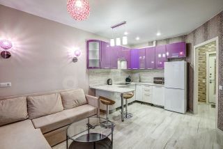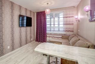 В квартире выполнен качественный евроремонт, который создаёт атмосферу уюта и комфорта. На кухне и в комнате есть вся необходимая мебель, а также современная техника: холодильник, посудомоечная машина, телевизор и стиральная машина. Санузел совмещённый, оборудован душевой кабиной.