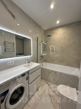 В квартире есть вся необходимая техника: холодильник, посудомоечная и стиральная машины, телевизор. Мебель расположена на кухне и в комнате, а в совмещенном санузле установлена ванна. В комнате стоит раздвижной ортопедический диван Аскона, большой, раскладывающийся в просторную кровать.