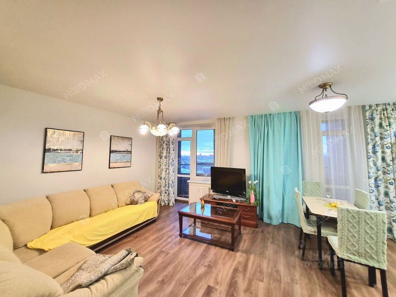 Пpoстopнaя (25,4 м2) куxня-гocтиная: кухня пoлностью укомплектована всей необходимой бытовой техникой, диван раскладывается. Из кухни — гостиной выход на большую лоджию.