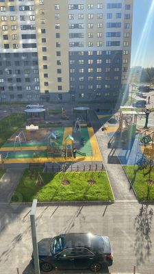 Дом расположен в районе с развитой инфраструктурой, рядом есть открытая парковка во дворе. Из окон открывается приятный вид на зеленый двор с детской площадкой.