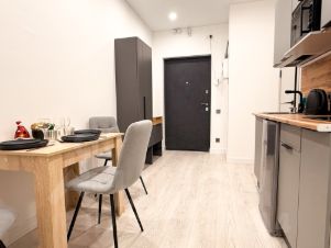 Просторная кухня со всем необходимым оборудованием (холодильник, плита, микроволновая печь, чайник, посуда) Современная ванная комната с душем, стиральной машиной Высокоскоростной Wi-Fi