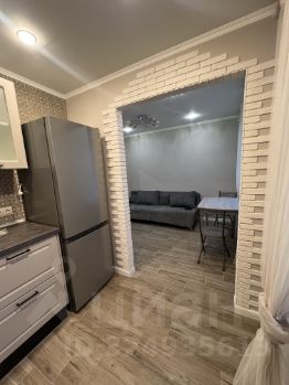 Кухня площадью 6 м² оборудована всем необходимым: варочная панель, духовой шкаф, вытяжка, холодильник и стильный кухонный гарнитур. В гостиной установлен телевизор с кабельным/цифровым ТВ, диван.