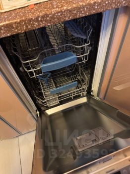 Просторная кухня площадью 9м² оснащена необходимой техникой: холодильником, варочной панелью, духовым шкафом и посудомоечной машиной. Из окон открывается вид на зеленый двор.